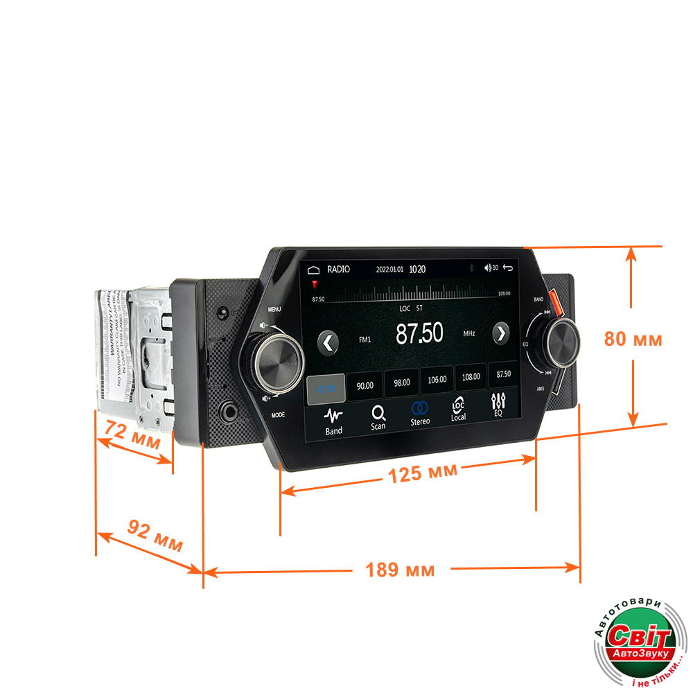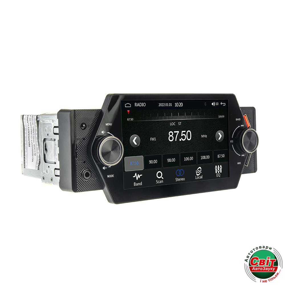 Бездисковий MP-5 ресивер з FM радіо, Мультимовне меню, 5 " сенсорний дисплей, Висока вихідна потужність (4 х 45 Вт), Модуль Вluetooth з підтримкою відтворення музики, Вбудований мікрофон. Змінюване підсвічування сенсорних кнопок, Відтворення аудіо, відео, фото з USB/ microSD. Відеовхід для камери заднього огляду. Підтримка кнопок управління з керма. Підтримка CarPlay/Android Auto.