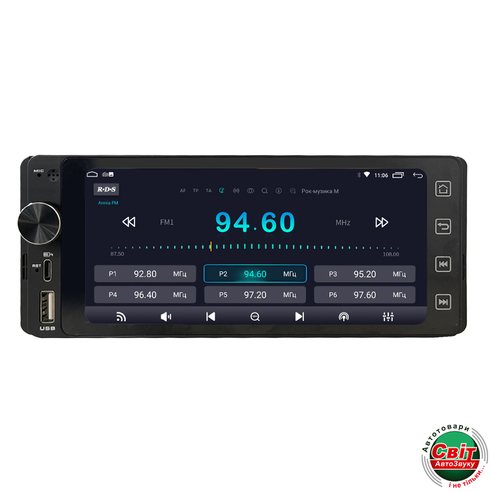 Універсальна 1 DIN магнітола Cyclone MP-5006 під керуванням операційної системи Android 10.0 - це втілення передових технологій та інноваційних функцій, які принесуть справжнє задоволення за кермом, і дозволить бути в курсі всіх подій і зв'язку в будь-який час і в будь-якому місці. Сенсорний широкоформатний дисплей розміром 6,6 дюймів, з роздільною здатністю 960x480 пікселів, стає незамінним органом управління головним пристроєм. Універсальна магнітола на ОС Android оснащена 4-х ядерним процесором Cortex-A7 з частотою 1,3 Ghz і 2GB оперативної пам'яті. Ці характеристики дозволять відтворювати музичні файли, відео файли (високої роздільної здатності), а також використовувати будь-які навігаційні програми без гальмування та з максимальною комфортністю. Вихід в інтернет за рахунок вбудованого модуля Wi-Fi. Порт Type-C для заряджання мобільних пристроїв.