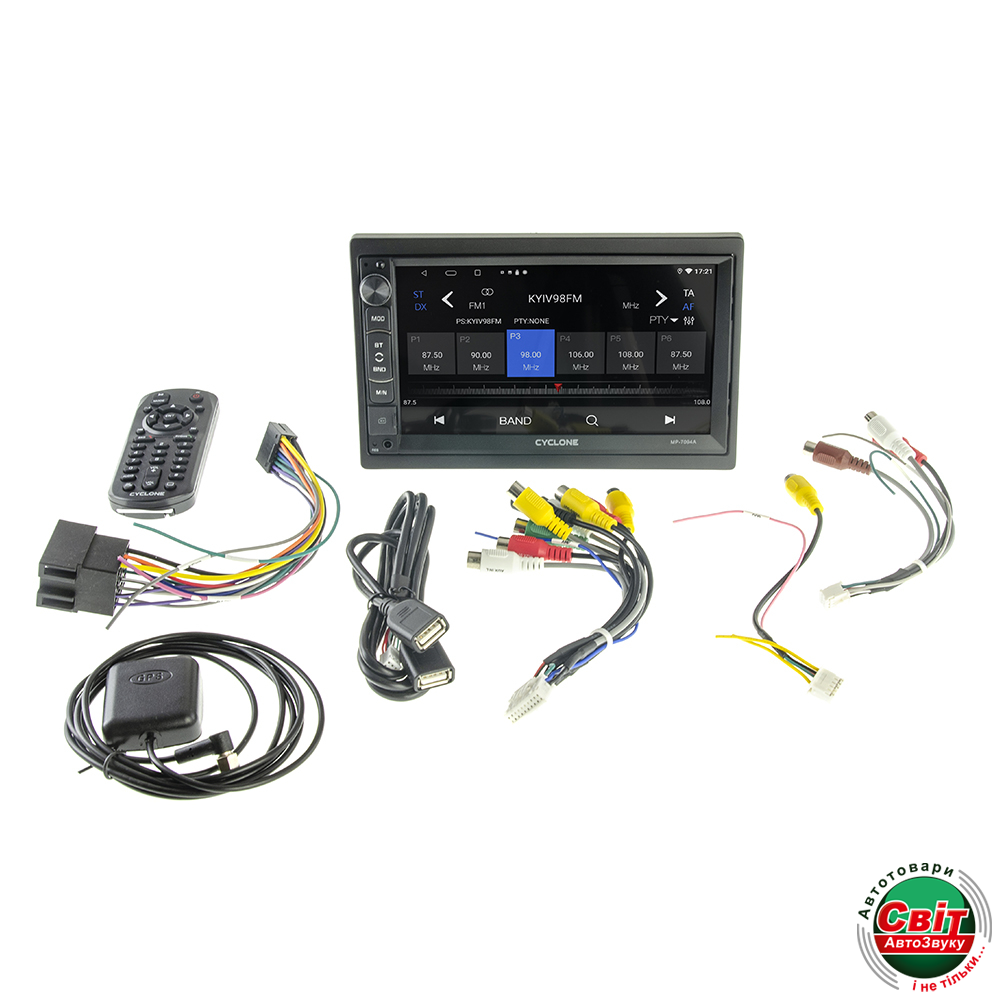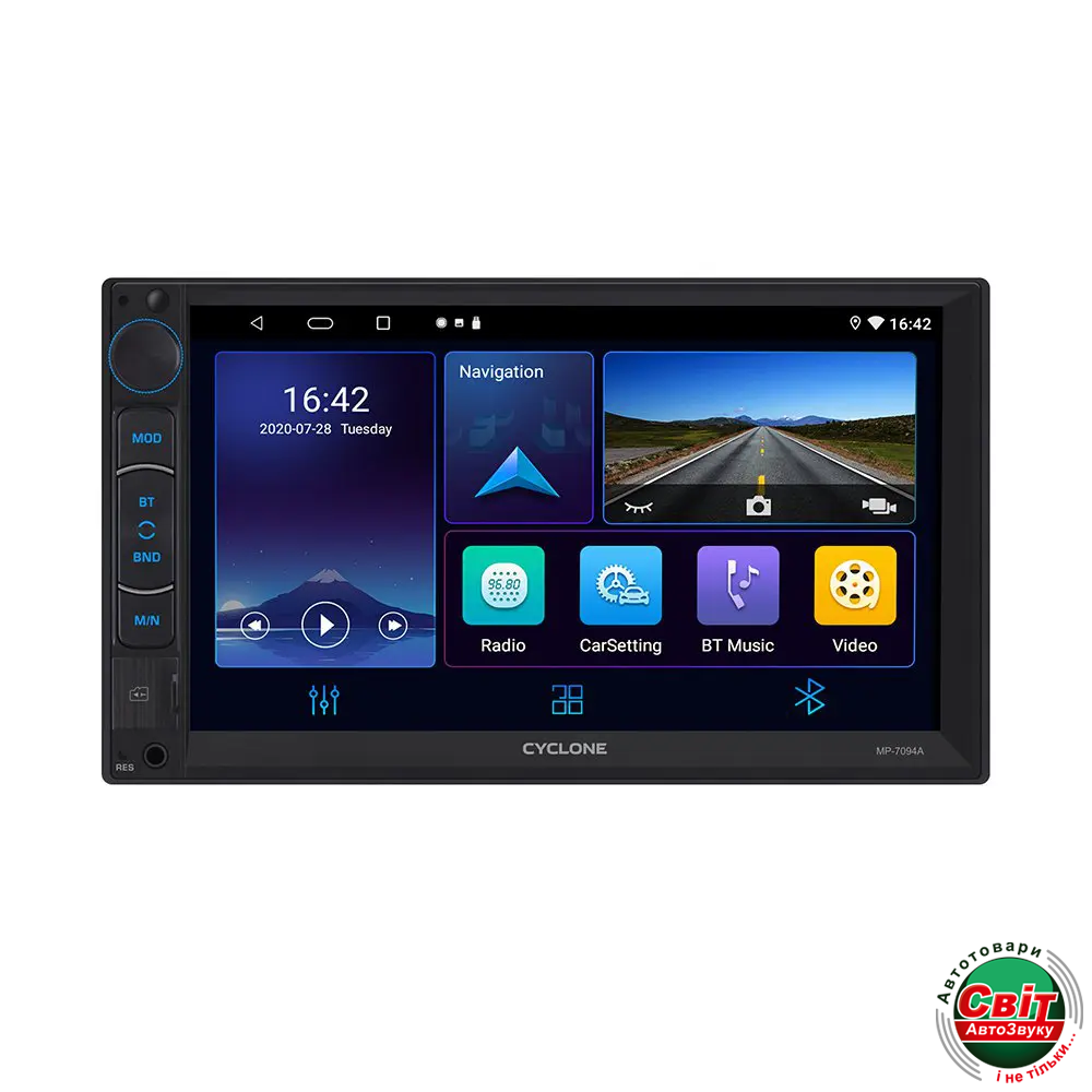 Автомагнітола Cyclone MP-7094A v2Універсальна магнітола CYCLONE MP-7094A v2 з укороченим корпусом під управлінням операційної системи Android 10 - це втілення передових технологій та інноваційних функцій, що принесуть справжнє задоволення за кермом та дадуть змогу бути в курсі всіх подій та бути на зв'язку в будь-який час та в будь-якому місці. Величезний сенсорний дисплей розміром 7 дюймів, з роздільною здатністю 1024x600 пікселів, ставати незамінним органом управління головним пристроєм, а функція "мультитач" покращує і без того швидку чуйність на торкання. Універсальна магнітола на ОС Android оснащена, сучасним 8-ми ядерним процесором з частотою в 2,6 Ghz і 2GB оперативної пам'яті. Ці характеристики дадуть змогу відтворювати музичні файли, відеофайли (з високою роздільною здатністю), а також використовувати будь-які навігаційні програми без гальмування і з максимальною комфортністю. Завдяки вбудованому Wi-Fi модулю, можна виходити в інтернет, отримувати пошту, дізнаватися погоду, стан заторів на дорозі. За допомогою встановленого Play Market, Ви самі з легкістю можете розширювати функціонал штатної магнітоли. Завантажуйте звичні вам додатки YouTube, Skype, програми для роботи з соціальними мережами, офісні програми, ігри - і проводьте час у виснажливих заторах на зв'язку з друзями, або переглядом останніх новин і повідомлень.