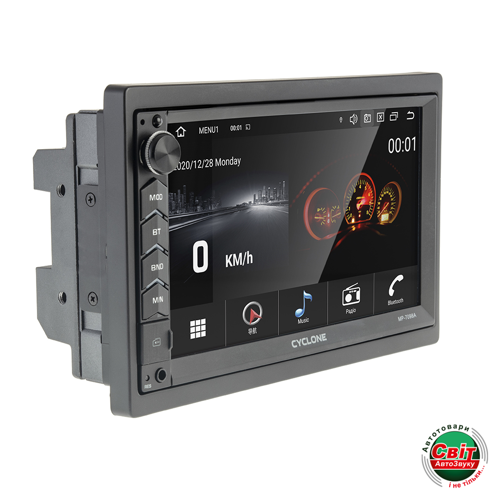 Автомагнітола Cyclone MP-7098A GSMУніверсальна магнітола CYCLONE MP-7098A DSP під управлінням операційної системи Android 10 - це втілення передових технологій та інноваційних функцій, які принесуть справжнє задоволення за кермом, і дасть змогу бути в курсі всіх подій і на зв'язку в будь-який час і в будь-якому місці. Величезний сенсорний дисплей розміром 7 дюймів, з роздільною здатністю 1024x600 пікселів, ставати незамінним органом управління головним пристроєм, а функція "мультитач" покращує і без того швидку чуйність на торкання. Універсальна магнітола на ОС Android оснащена сучасним 8-ми ядерним процесором A53 з частотою в 2,0 Ghz і 2GB оперативної пам'яті. Ці характеристики дадуть змогу відтворювати музичні файли, відеофайли (з високою роздільною здатністю), а також використовувати будь-які навігаційні програми без гальмування і з максимальною комфортністю. За рахунок 4G модему можна виходити в інтернет, отримувати пошту, дізнаватися погоду, стан заторів на дорозі. За допомогою встановленого Play Market, Ви самі з легкістю можете розширювати функціонал штатної магнітоли. Завантажуйте звичні вам додатки YouTube, Skype, програми для роботи з соціальними мережами, офісні програми, ігри - і проводьте час у виснажливих заторах на зв'язку з друзями, або переглядом останніх новин і повідомлень.