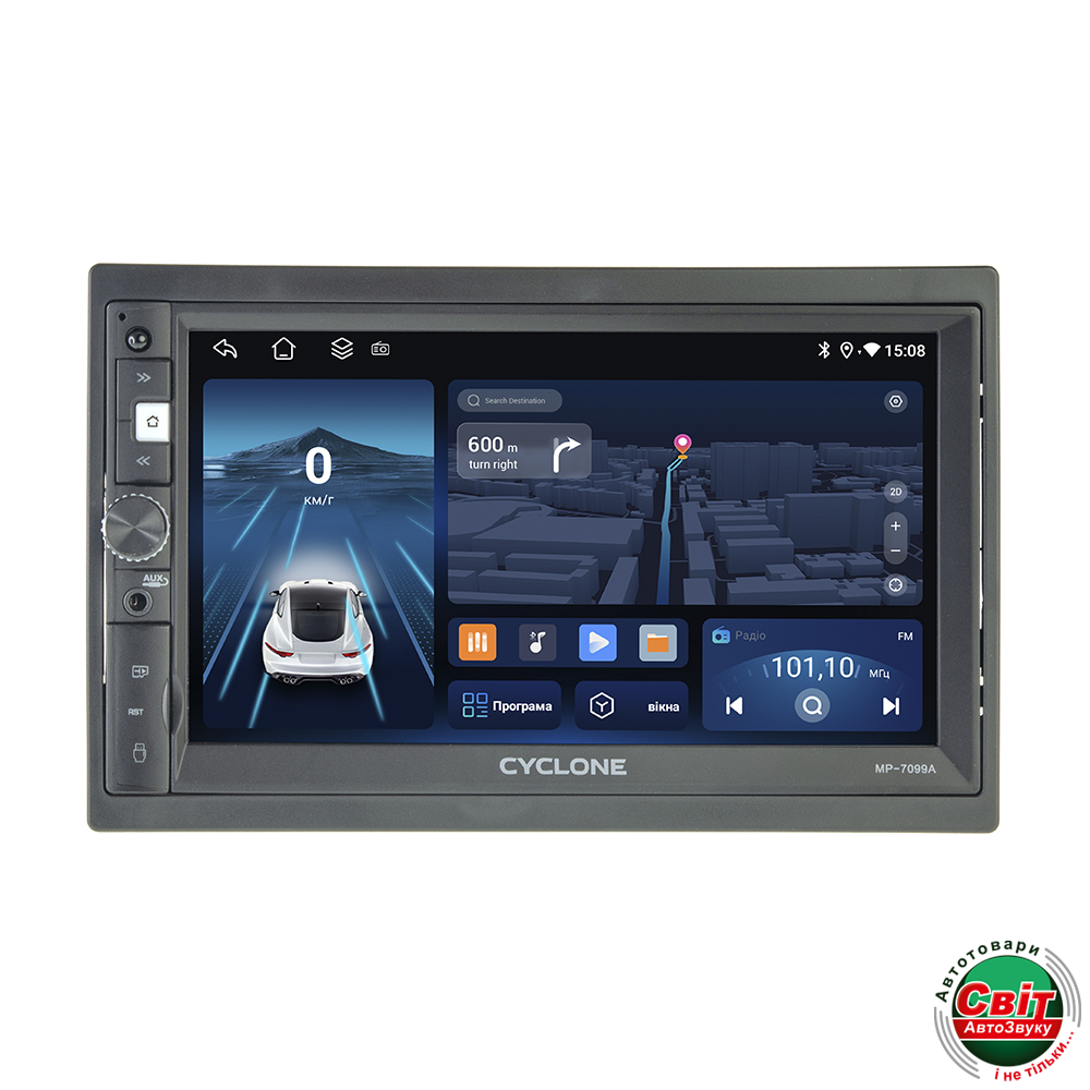 Автомагнітола Cyclone MP-7099A v2Універсальна магнітола Cyclone MP-7099A v2 під керуванням операційної системи Android 13 – це втілення передових технологій та інноваційних функцій, які принесуть справжнє задоволення за кермом, і дозволить бути в курсі всіх подій та на зв'язку у будь-який час та в будь-якому місці. Величезний сенсорний дисплей Q-LED розміром 7" дюймів, з роздільною здатністю 1024x600 пікселів, стає незамінним органом управління головним пристроєм, а функція "мультитач" покращує і без того швидку чуйність на дотики.