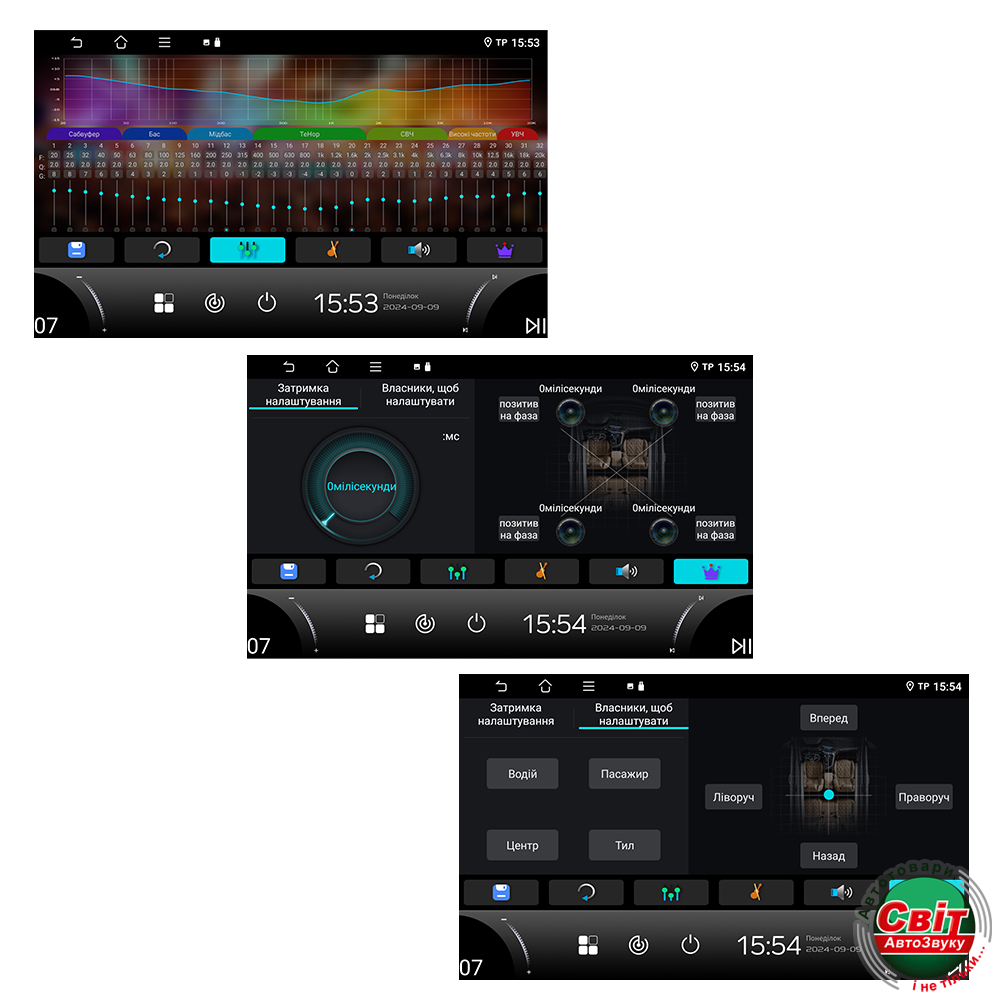 - Аудіовиход RCA (3 канали): 5 шт. (фронт-2/тил-2/центр-1)