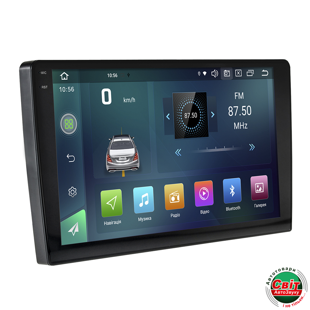 Величезний сенсорний дисплей розміром 9 "дюймів, з роздільною здатністю 2000X1200 пікселів, стає незамінним органом управління головним пристроєм, а функція "мультитач" покращує і без того швидку чуйність на дотики. Універсальна магнітола на ОС Android оснащена (MT6762V/CB), 8 ядер, 4 Cortex A53 частота 2 ГГц, 4 Cortex A53 частота 1.5 ГГц та 6GB оперативної пам'яті.