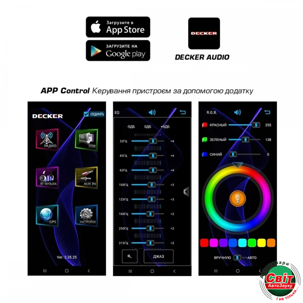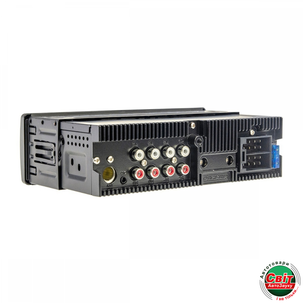 MP3 програвач з FM/AM тюнером Знімна передня панель Вихідна потужність 4 х 50 W Якісний звук (DSP - цифрова обробка аудіосигналу) 48 смуговий еквалайзер (HPF, LPF) Сумісність з форматами MP3, WMA, FLAC Читання ID3 TAG Bluetooth з профілем A2DP FM/AM радіоприймач з RDS Пам'ять на 18FM, 12AM радіостанцій Вбудований мікрофон Вхід для підключення зовнішнього мікрофона Інтерфейс USB Пошук файлів по папках Лінійний mini-jack стерео вхід Годинник Лінійний вихід (8 RCA) Вихід для підключення сабвуфера (2 шт. RCA) (з окремим кросовером та функцією регулювання) Меню англійською або українською мовою Змінне підсвічування кнопок Яскравий, великий, контрастний LCD дисплей Підтримка кнопок на кермі Роз'єм ISO Стандартний монтажний розмір 1 Din
