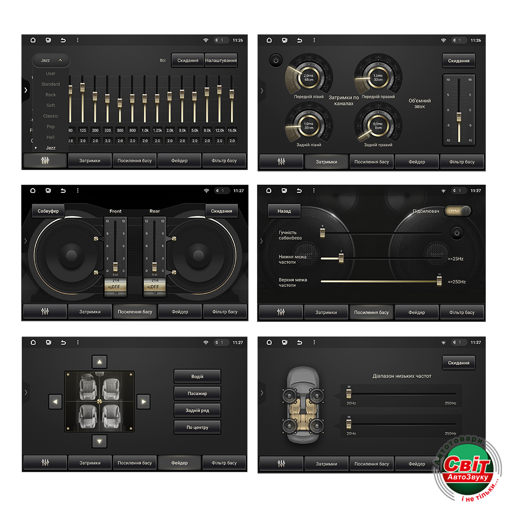 • Повноцінний DSP (EQ 2х16, тимчасові затримки/баси/фільтр/регулювання гучністю сабвуфера)