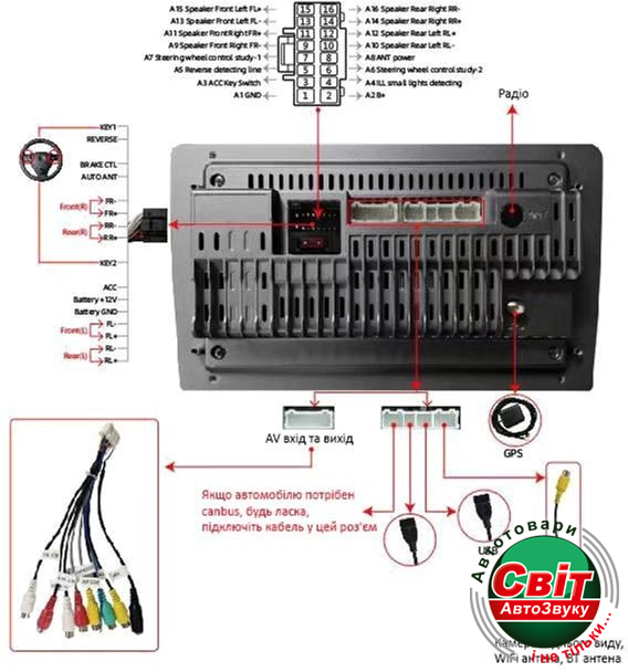 Bluetooth, DSP процесор, GPS модуль, Wi-Fi, Підтримка iPhone/iPod, USB-вхід