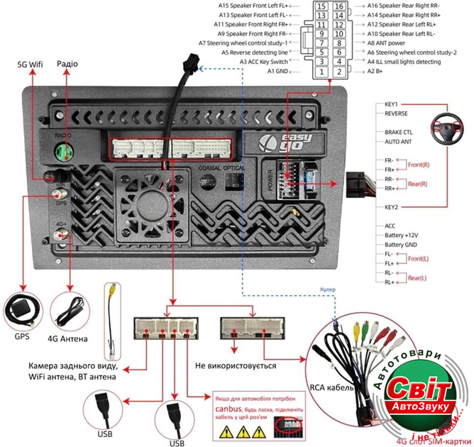 Підсилювач звуку TDA7850 і цифровий звуковий процесор DSP забезпечують високоякісне звучання, а також безліч налаштувань для найкращого звучання.