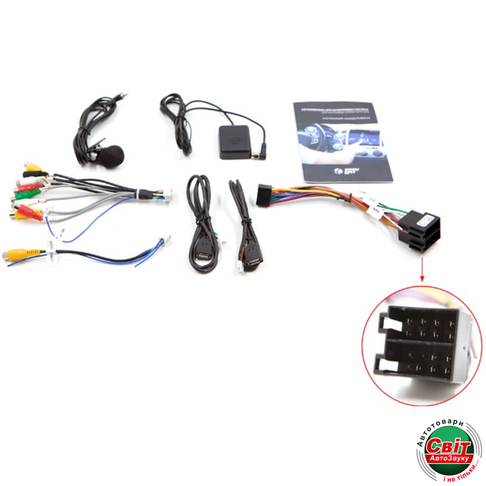 - Роз'єми: RCA, SD USB, підключення камери заднього виду