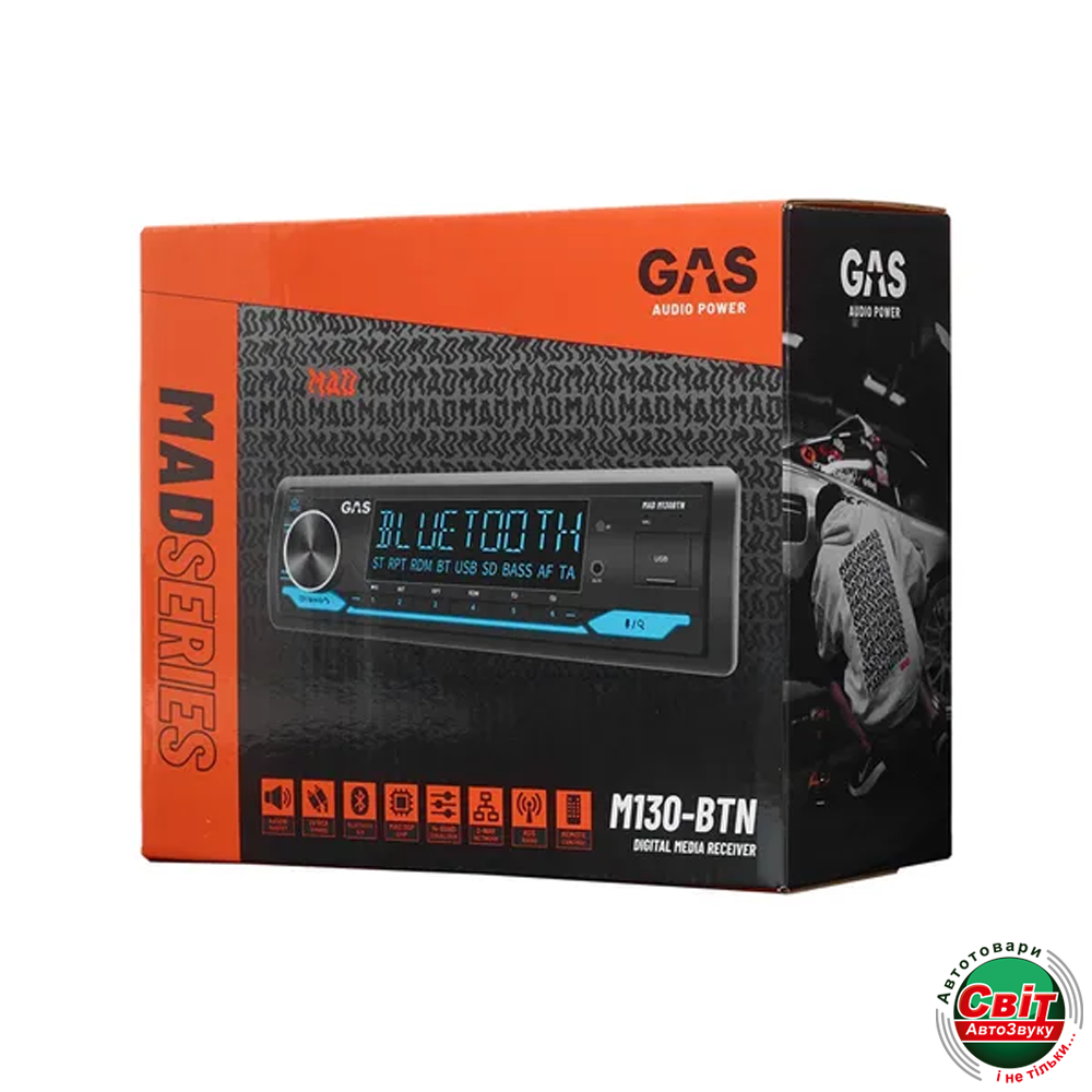 Автомагнітола GAS MAD M130BTNВиведіть свою аудіосистему на новий рівень із MAD M130-BTN! Цей потужний однодиновий головний пристрій підтримує відтворення WAV та FLAC, забезпечуючи справжню чистоту звуку у вашому автомобілі. Насолоджуйтесь музикою через Bluetooth, USB або AUX або налаштуйте улюблену радіостанцію під час поїздок. Ми не дарма називаємо себе Audio Power!