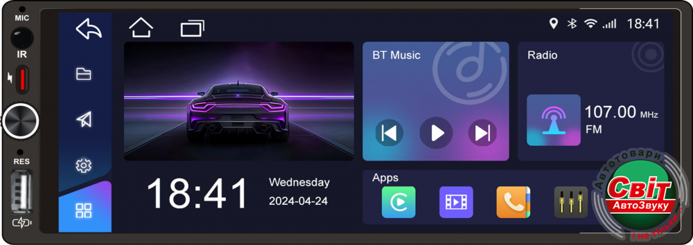 Geermax A600 — це сучасна 1-DIN мультимедійна система з висувним 6.86-дюймовим сенсорним екраном, що працює на базі Android 13. Потужний 4-ядерний процесор у поєднанні з 2 ГБ оперативної пам’яті гарантує швидкодію, стабільну роботу та підтримку найновіших додатків і мультимедійних функцій.