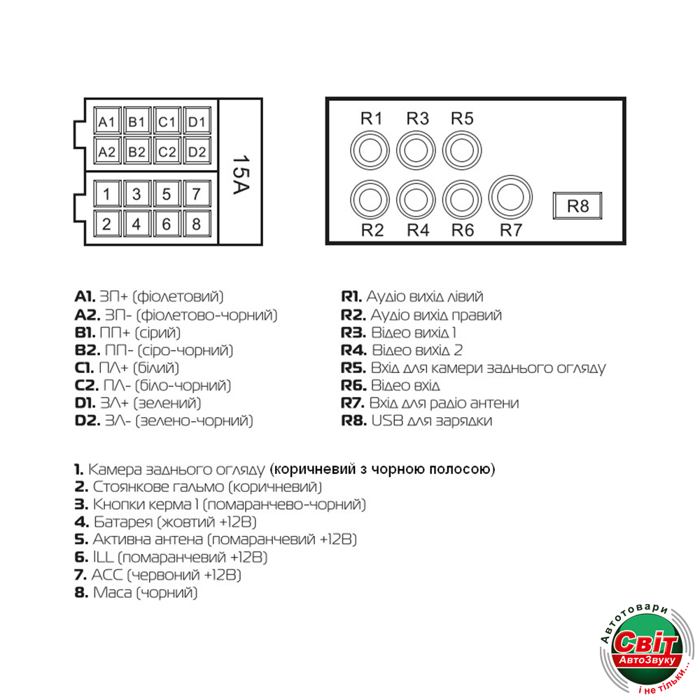 - Відеовихід - 2 шт. (RCA)(Повне дублювання зображення на зовнішній монітор)