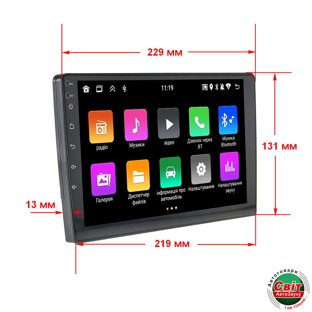 - Розмір пристрою: 229х131х219х13 мм