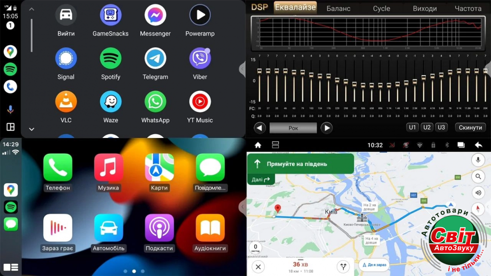 - Apple CarPlay і AndroidAuto. Бездротове підключення Apple CarPlay і підключення Android Auto за допомогою кабелю USB. Apple CarPlay і AndroidAuto реалізовано в додатку SpeedPlay.