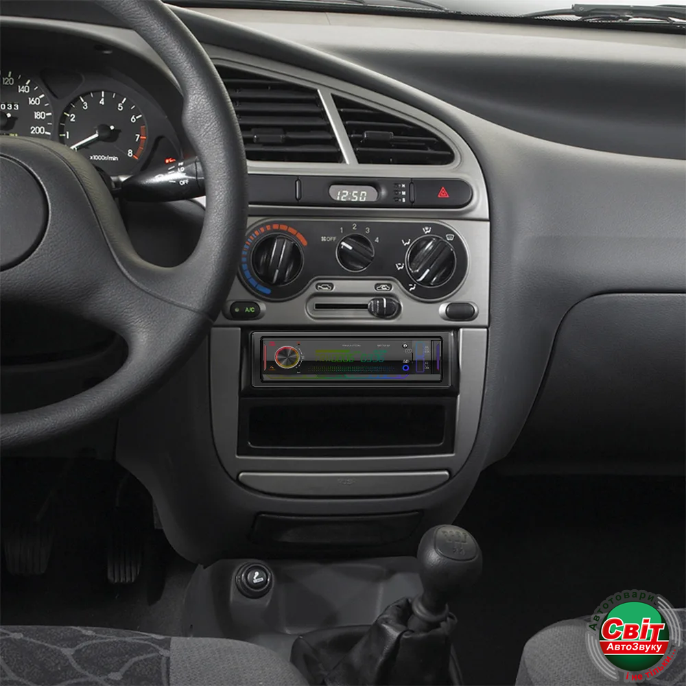Автомагнітола обладнана USB/microSD програвачем, Bluetooth, FM радіоприймачем, незйомною передньою панеллю та мультипідсвіткою дисплею та кнопок на передній панелі.