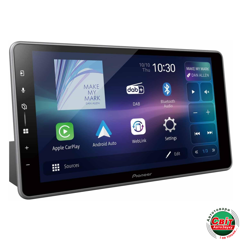 Автомагнітола Pioneer SPH-DA97DAB-UNI29,0-дюймова магнітола SPH-DA97DAB з підтримкою Wi-Fi відтепер може бути встановлена в різних автомобілях завдяки плаваючому типу установки 1-DIN. У ній є Apple CarPlay (бездротовий і дротовий), Android Auto (бездротовий і дротовий), цифрове радіо DAB+, Bluetooth і система Pioneer Direct Key для швидкого, простого і безпечного управління одним дотиком.