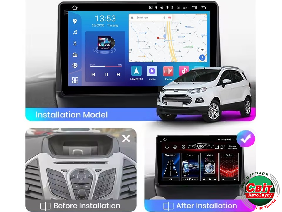 - ›Автомагнітола штатна FORS.auto FS 2 PRO для Ford Ecosport (2+32Gb, 9inch) 2012-2017