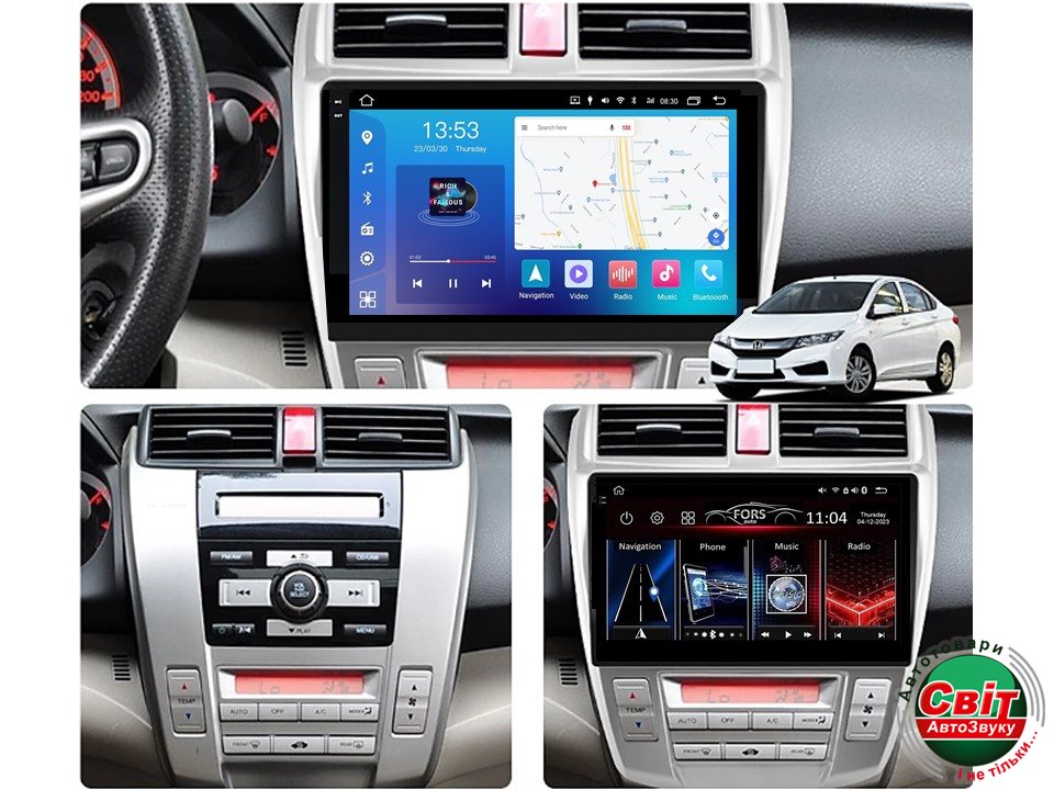 - ›Автомагнітола штатна FORS.auto FS 2 PRO для Honda City (2+32Gb, 10inch, Auto AC) 2008-2011