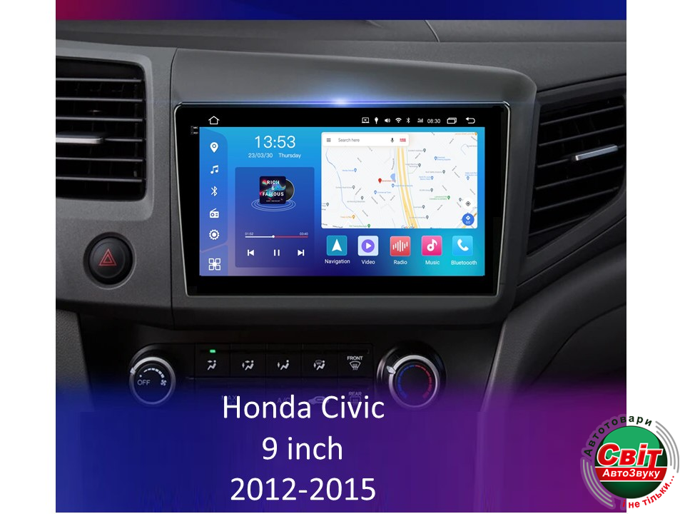 - ›Автомагнітола штатна FORS.auto FS 2 PRO для Honda Civic (2+32Gb, 9inch) 2012-2015