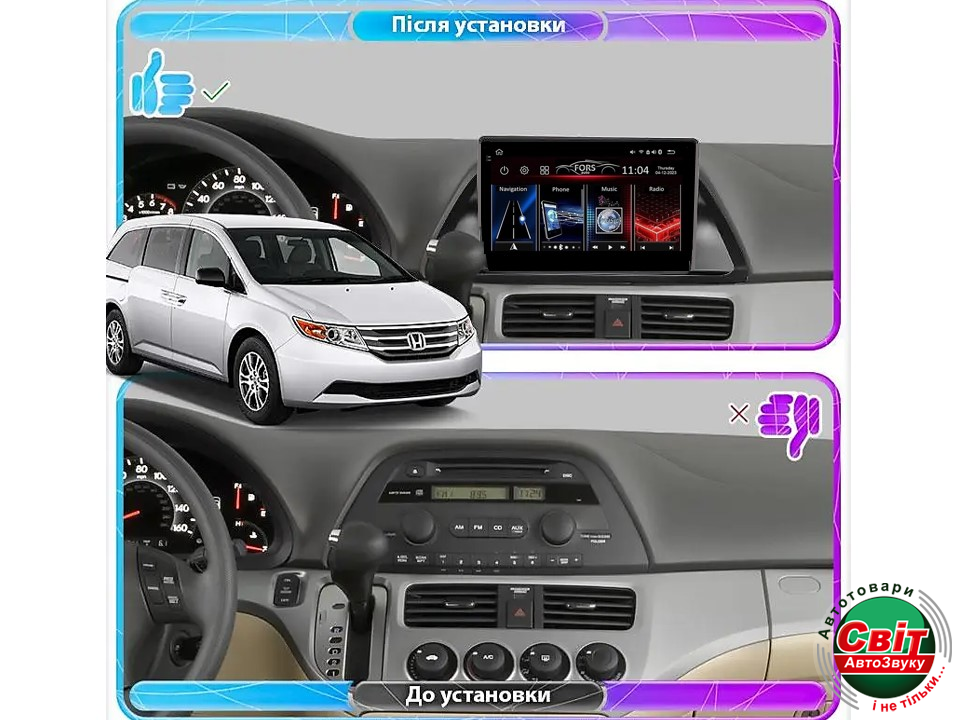 - ›Автомагнітола штатна FORS.auto FS 2 PRO для Honda Odyssey (2+32Gb, 10inch, LHD, American version) 2005-2010