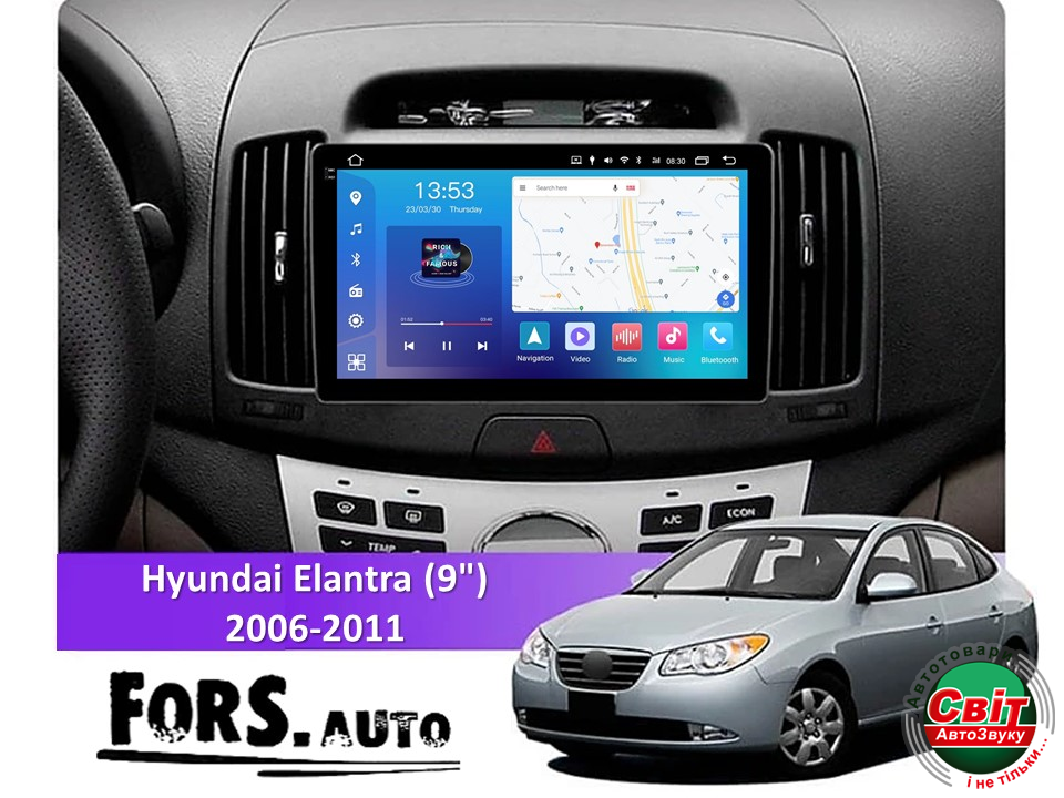 - ›Автомагнітола штатна FORS.auto FS 2 PRO для Hyundai Elantra (2+32Gb, 9inch) 2006-2011