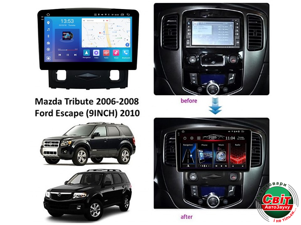 - ›Автомагнітола штатна FORS.auto FS 2 PRO для Mazda Tribute 2006-2008/Ford Escape (2+32Gb, 9inch) 2010+