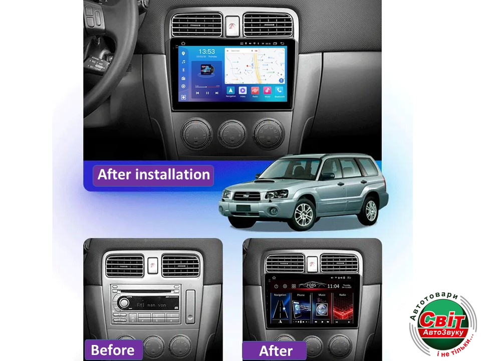 - ›Автомагнітола штатна FORS.auto FS 2 PRO для Subaru Forester (2+32Gb, 9inch) 2004-2008
