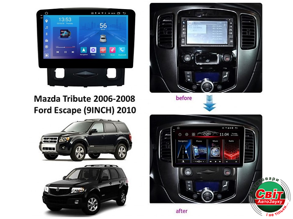 - ›Автомагнітола штатна FORS.auto FS 2 ULTRA для Mazda Tribute 2006-2008/Ford Escape (2+32Gb, 9") 2010+