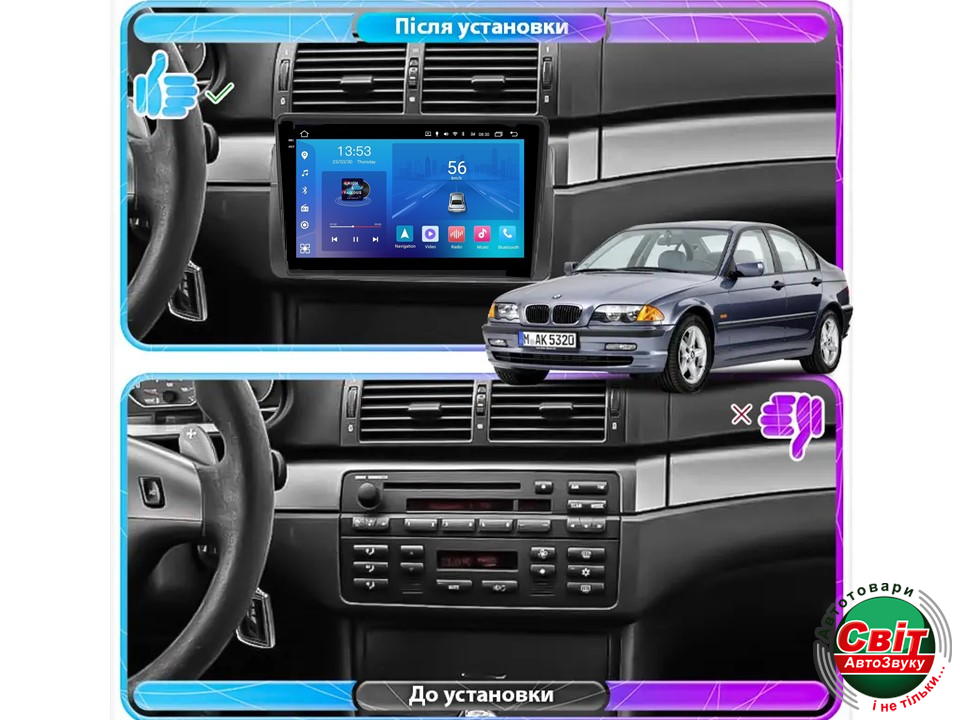 - ›Автомагнітола штатна FORS.auto FS 2 ULTRA для BMW 3 Series E46 (2+32Gb, 9") 1998-2005