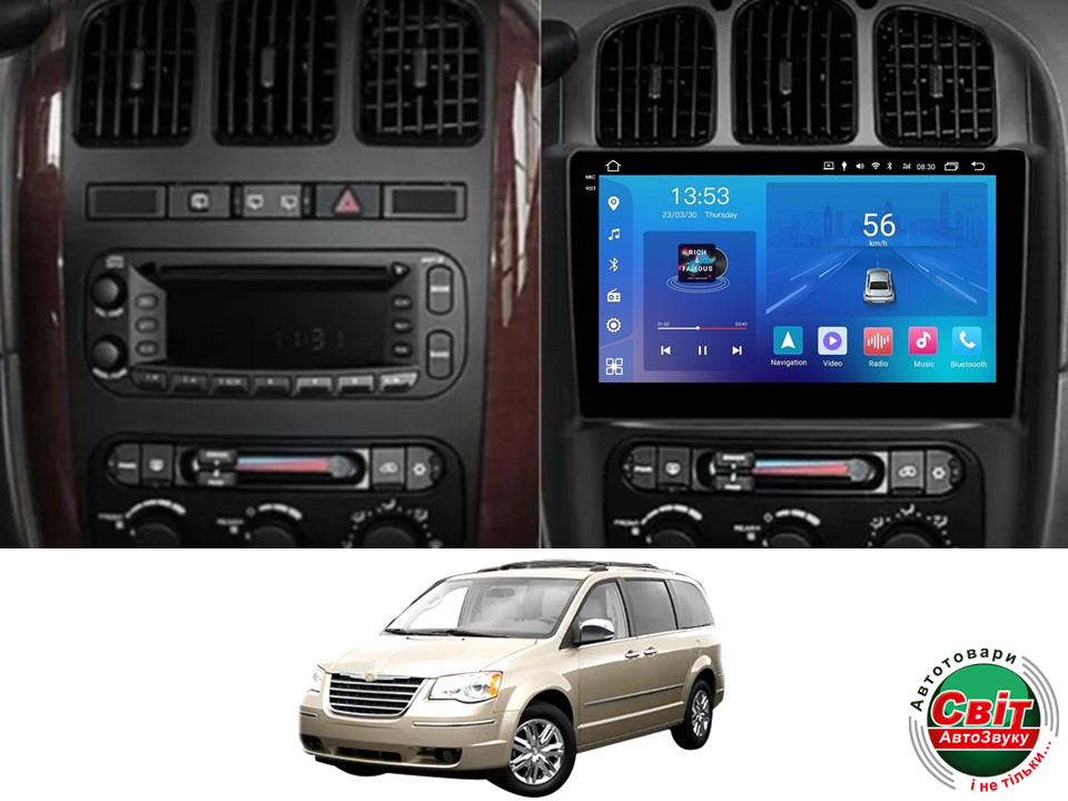 - ›Автомагнітола штатна FORS.auto FS 2 ULTRA для Chrysler Grand Voyager (2+32Gb, 10") 2006-2012