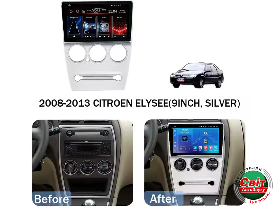 - ›Автомагнітола штатна FORS.auto FS 2 ULTRA для Citroen C-Elysee (2+32Gb, 9", silver) 2008-2013