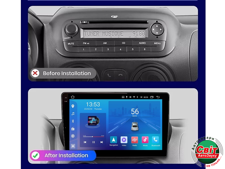 - Додаткові характеристики: 2+32Gb, 10", Android 12, 4 core, CarPlay, Android auto, 1280x720