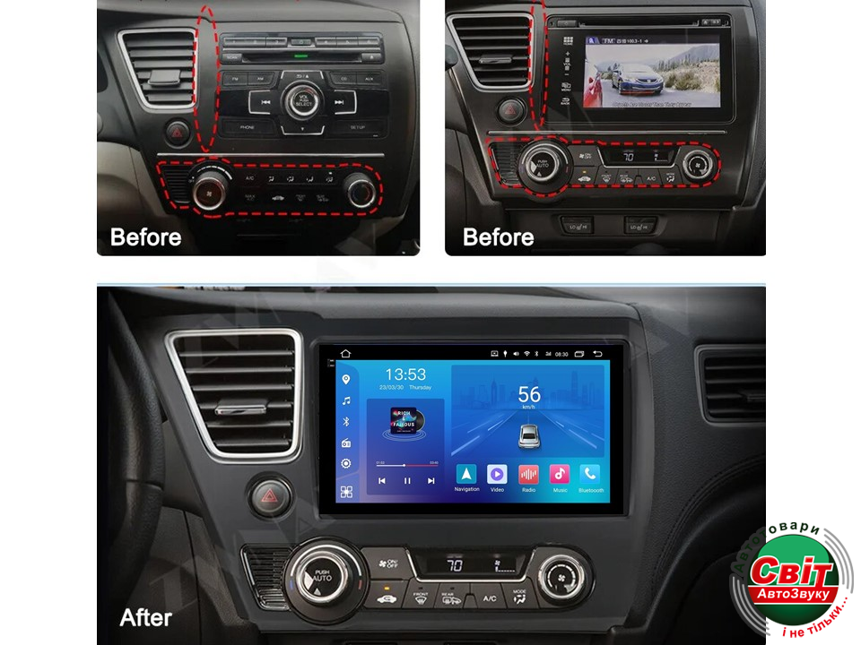 - ›Автомагнітола штатна FORS.auto FS 2 ULTRA для Honda Civic (2+32Gb, 9") 2013-2016