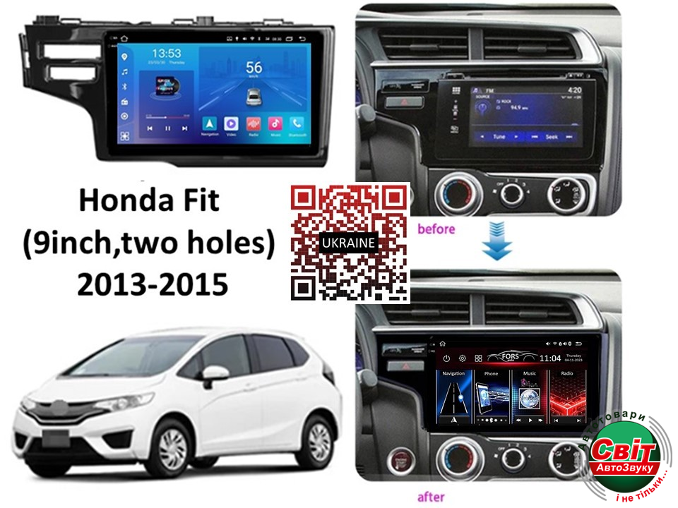 - ›Автомагнітола штатна FORS.auto FS 2 ULTRA для Honda FIT (2+32Gb, 9", Two holes) 2013-2015