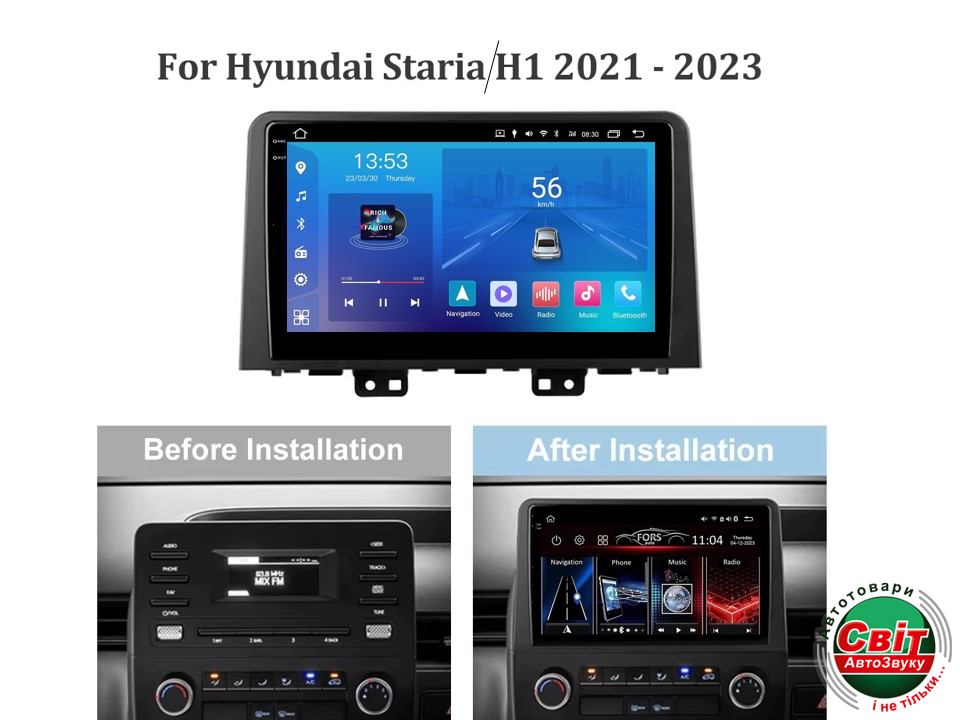 - ›Автомагнітола штатна FORS.auto FS 2 ULTRA для Hyundai Staria/H1 (2+32Gb, 10", black) 2021-2023