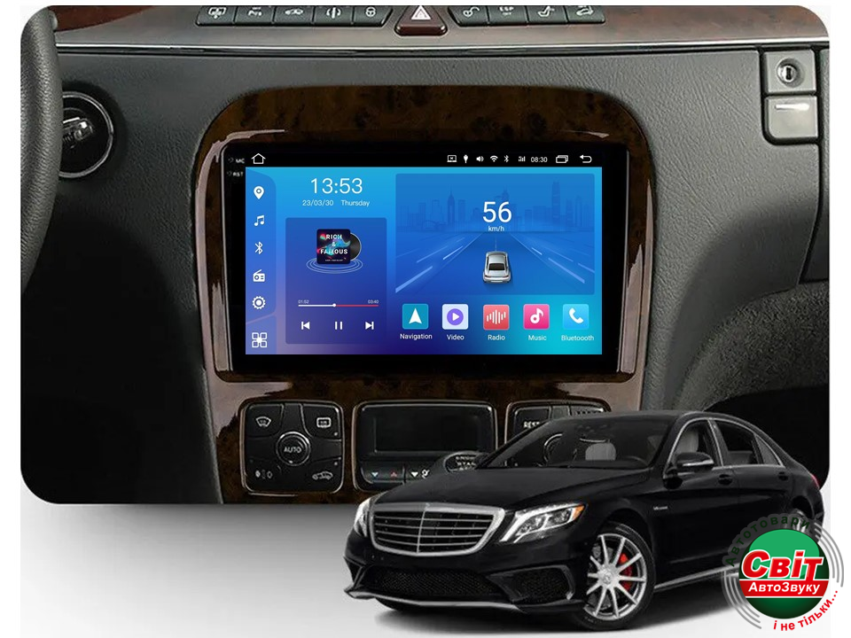 - ›Автомагнітола штатна FORS.auto FS 2 ULTRA для Mercedes-Benz S-Class W220-коричневий (2+32Gb, 9") 1998-2005