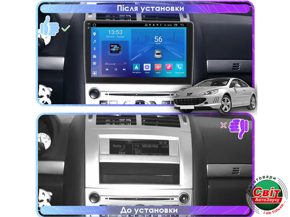 - ›Автомагнітола штатна FORS.auto FS 2 ULTRA для Peugeot 407 (2+32Gb, 9") 2004-2008