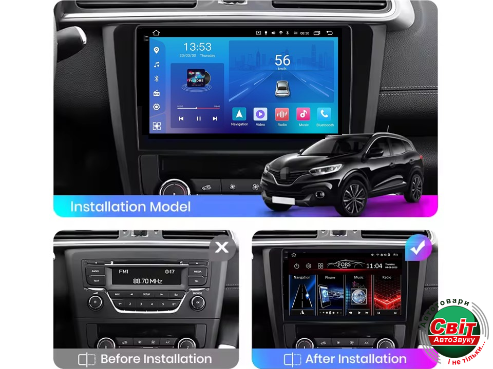 - ›Автомагнітола штатна FORS.auto FS 2 ULTRA для Renault Kadjar (2+32Gb, 9") 2015-2017