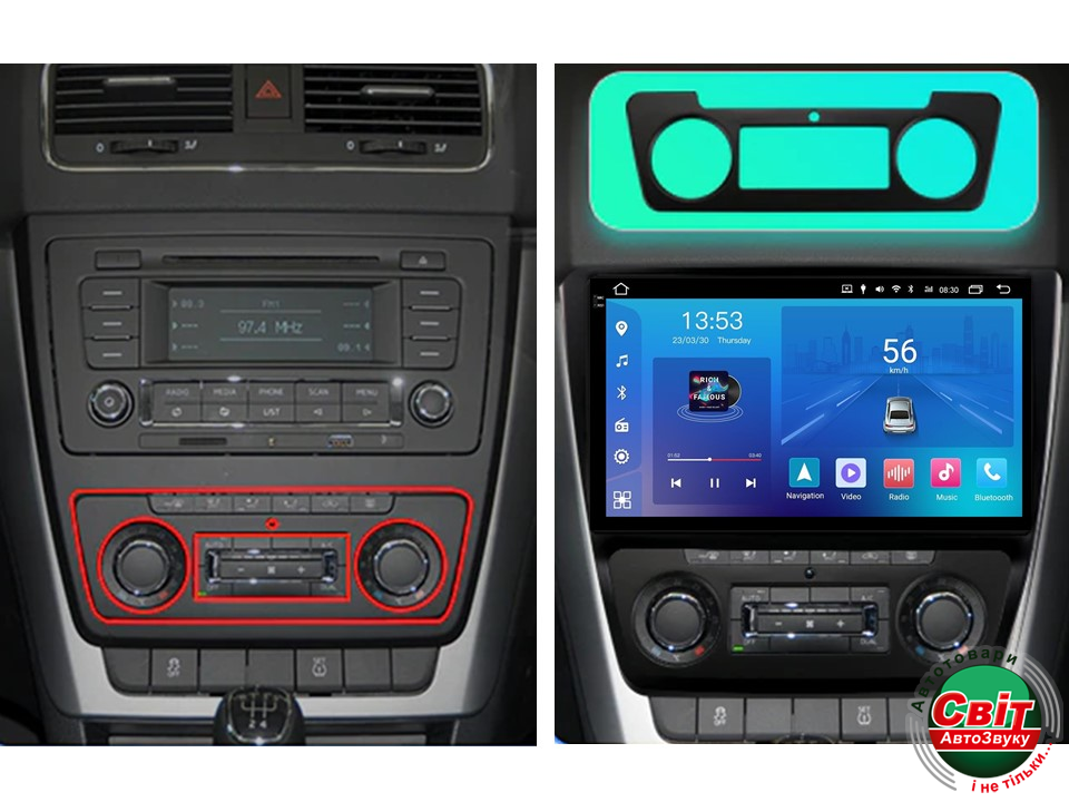 Штатна магнітола FORS.auto є повноцінною інформаційно-розважальною системою. Вона виготовлена із високоякісних матеріалів, а її форма ідеально підходить під панель машини.