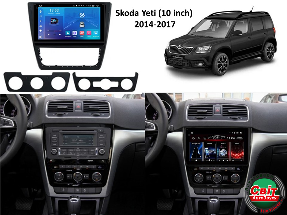 - ›Автомагнітола штатна FORS.auto FS 2 ULTRA для Skoda Yeti (2+32Gb, 10") 2014-2017
