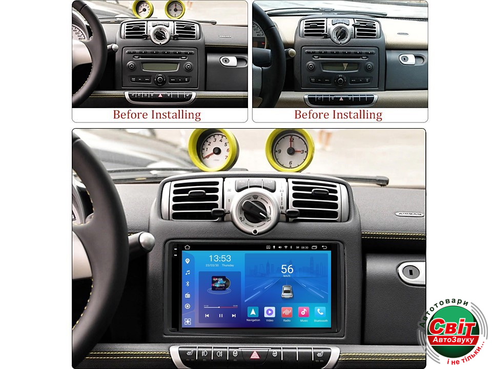 - ›Автомагнітола штатна FORS.auto FS 2 ULTRA для Smart Fortwo (2+32Gb, 9") 2005-2010