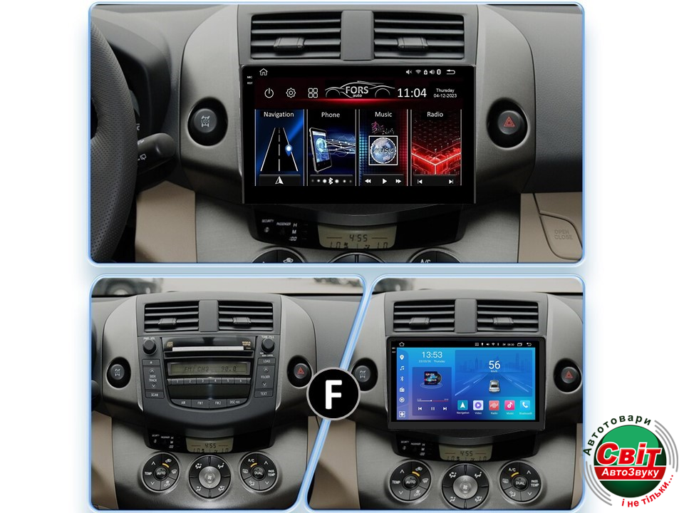 - ›Автомагнітола штатна FORS.auto FS 2 ULTRA для Toyota RAV4 (2+32Gb, 9") 2006-2012