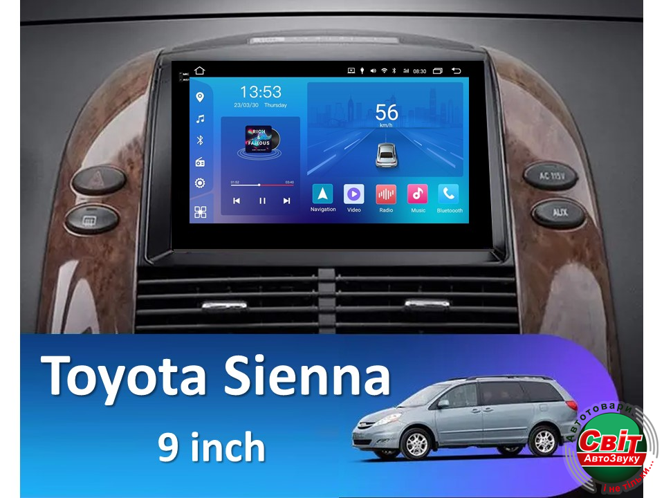 - ›Автомагнітола штатна FORS.auto FS 2 ULTRA для Toyota Sienna (2+32Gb, 9") 2004-2010
