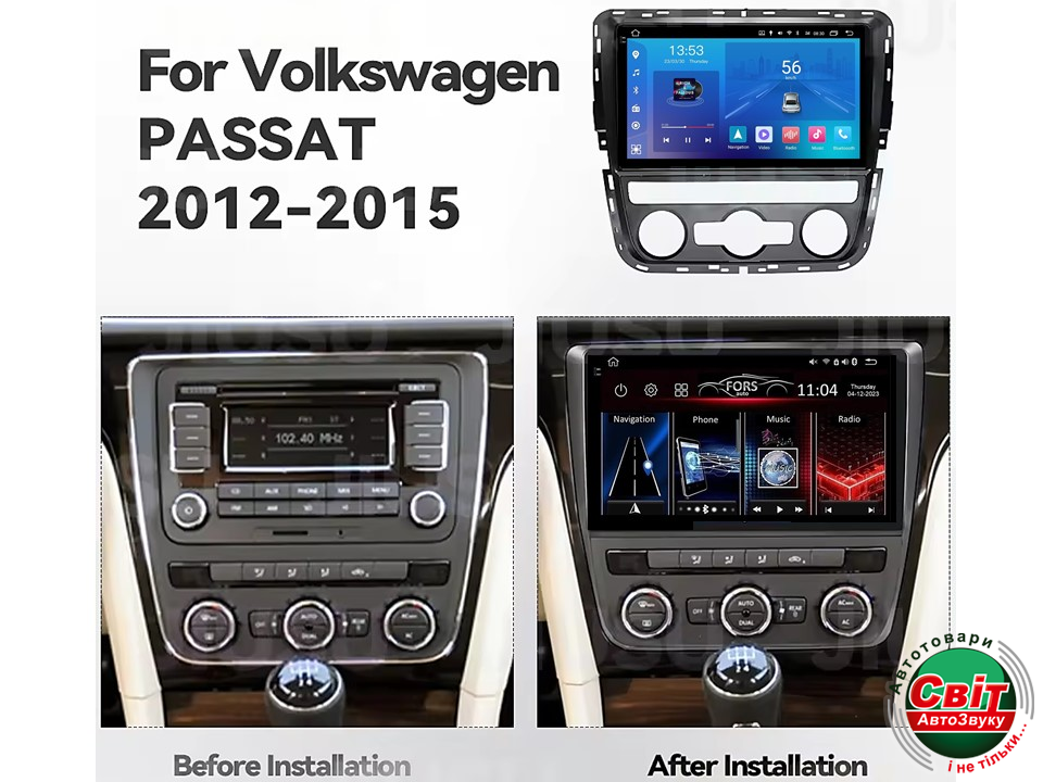 - ›Автомагнітола штатна FORS.auto FS 2 ULTRA для Volkswagen Passat (2+32Gb, 9", Auto AC) 2012-2015