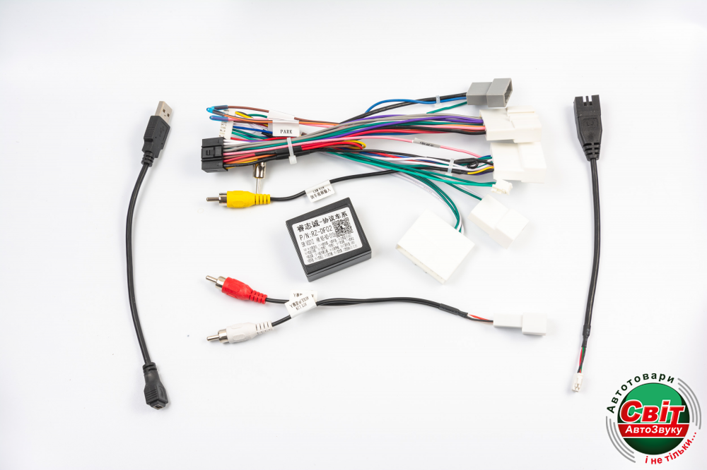 5.Кабель RCA «Aux Video IN», RCA «TV Video IN», вхід для зовнішнього мікрофону «Mic», «Brake» (гальмо), TPMS-RXD, TPMS-TXD, антена Bluetooth, антена Wi-Fi (2,4 ГГц).