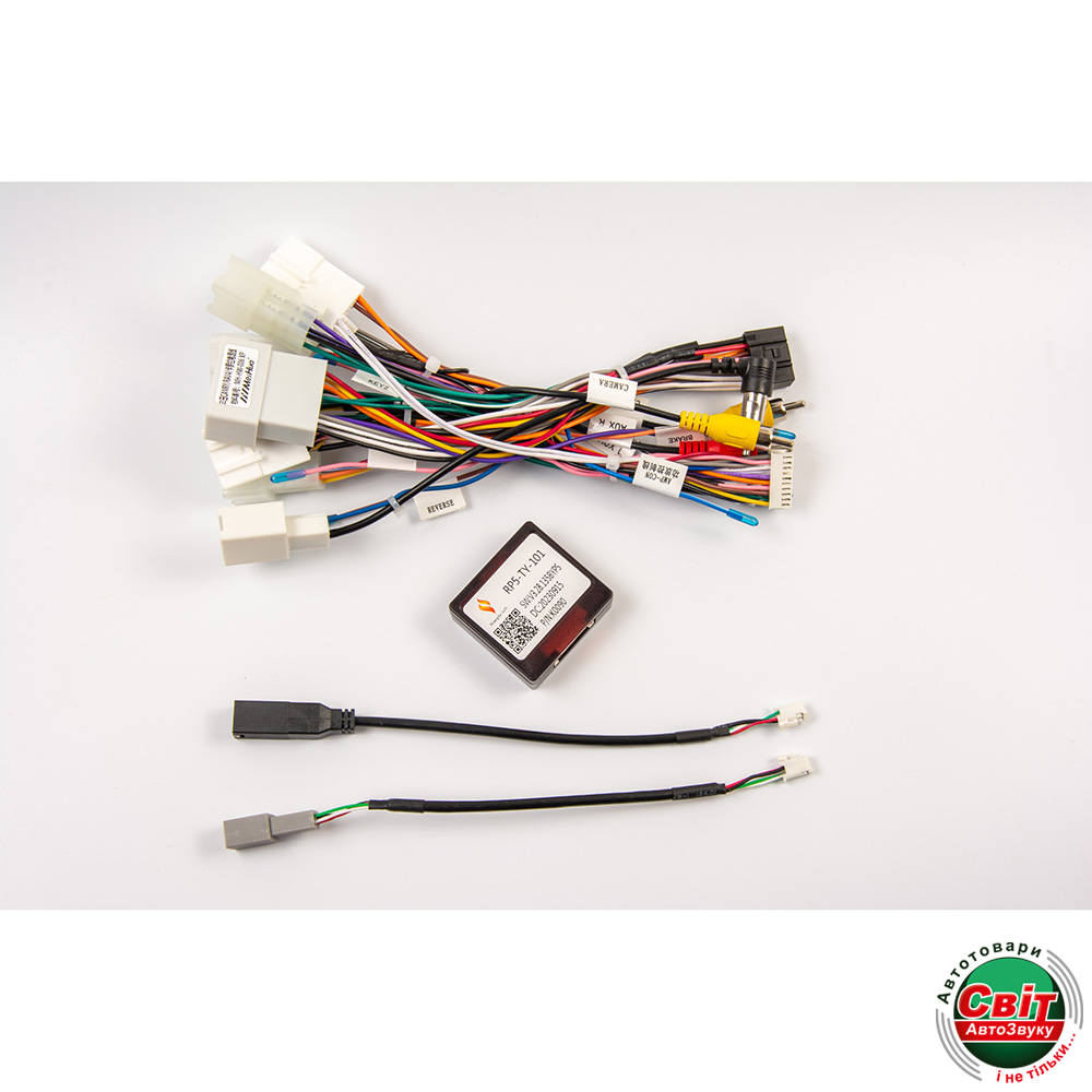7.Кабель RCA «TV L in», «TV R in», «TXD» (вихід на CAN-адаптер), «RXD» (вихід на CAN-адаптер), «Power 12V» (живлення 12 В для додаткового пристрою), «Ground» (земля для додаткового пристрою).