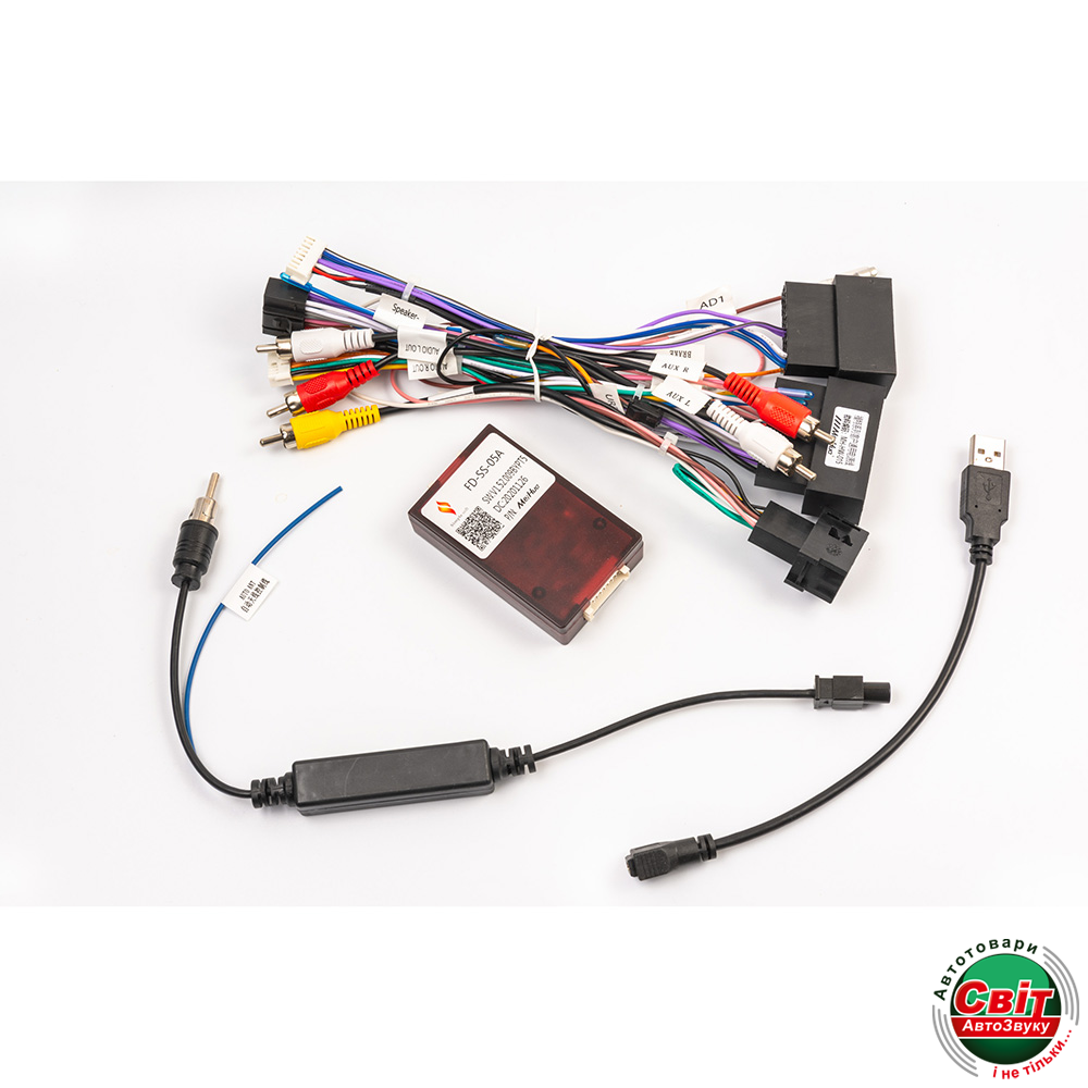 15.Комплект кабелів та Can Bus (за необхідності) адаптер для підключення до заводської проводки в автомобілі.