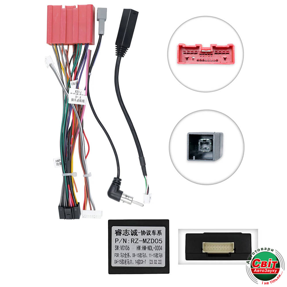15.Комплект кабелів та Can Bus (за необхідності) адаптер для підключення до заводської проводки в автомобілі.