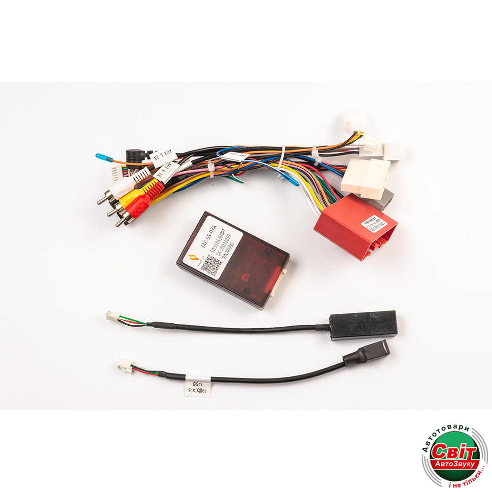15.Комплект кабелів та Can Bus (за необхідності) адаптер для підключення до заводської проводки в автомобілі.