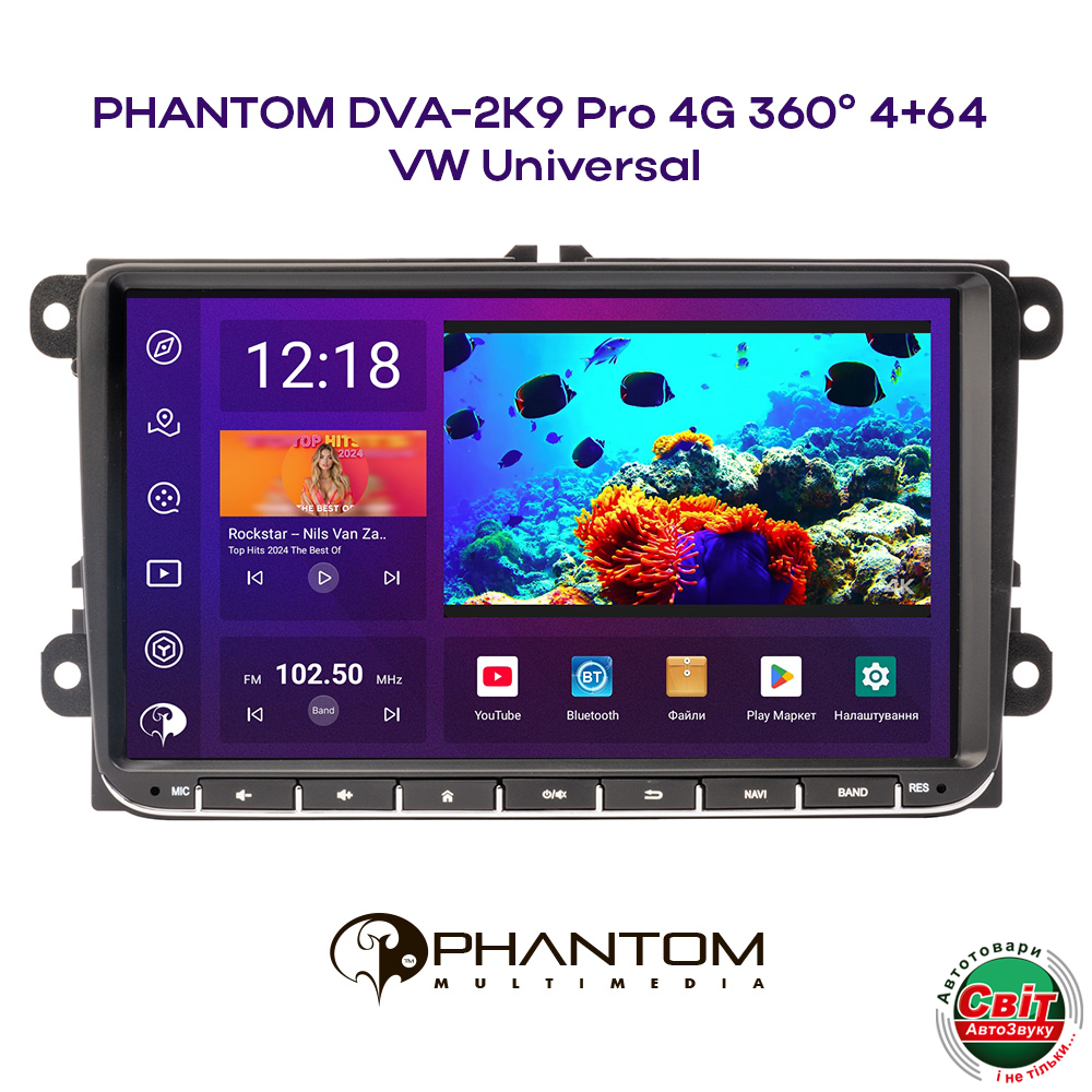 Штатна магнітола PHANTOM DVA-2K9 Pro 4G 360° 4+64 VW Universal на Android 13 спеціально розроблена для Вашого автомобіля та має низку передових рішень для комфортного користування.
