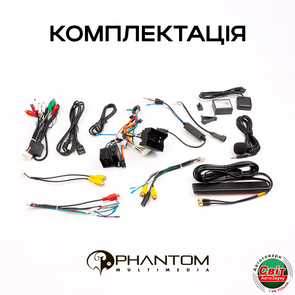 15.Комплект кабелів та Can Bus (за необхідності) адаптер для підключення до заводської проводки в автомобілі.